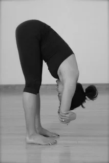 Stand with your feet hip width apart, with the outside edges of the feet parallel to each other. Fold forward at the hip crease, bringing the top of the pelvis forward. Lengthen the front of the body as you fold, keeping the neck and jaw relaxed. Engage the quadriceps to allow the hamstrings to lengthen. Let the weight be more on the balls of the feet, as opposed to the heels, to help align the hips over the ankles. As an option, you can choose to grab onto opposite elbows or forearms and just hang, noticing what you experience when you don’t have the goal of having to “get somewhere”. Remember that forward folds are not about how deep you can go but rather how deeply you can release.