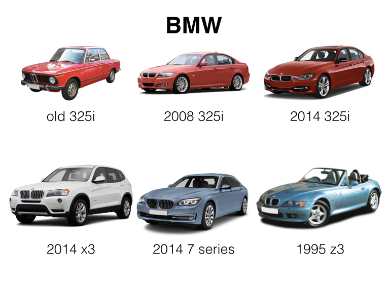 Some of these cars are easily recognizable. Why? They include design elements that get carried over from generation to generation, and across each model car in the portfolio. The design of these cars is so consistent that you instantly recognize what they are. The cars that are less recognizable suffer because they lack this consistency. Some car companies, for example, changes their designs every 2-3 years, which makes our mental models of what the car looks like less stable in our minds and thus harder to recognize.