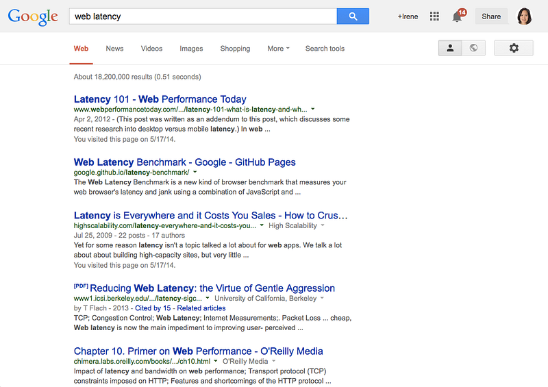 Google really took this design insight to heart. While Braun’s design principle was “Less but better” and Muji’s was to “bring calm to people’s stressful lives”, Google’s main design principle has always been “Fast”. This principle has informed every design decision, and is reflected throughout the experience. For example, we show how long it takes to serve a search result. We strip away the page of clutter so users can better focus on the results. We know from human interface research that black text against a white background provides the best contrast for reading text on screens, thus enabling people to get to their destination faster.