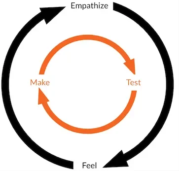 The ideal design process is a commitment to continuous making and testing, all within a container of empathizing and feeling. Heart, mind, and hand are integrated.